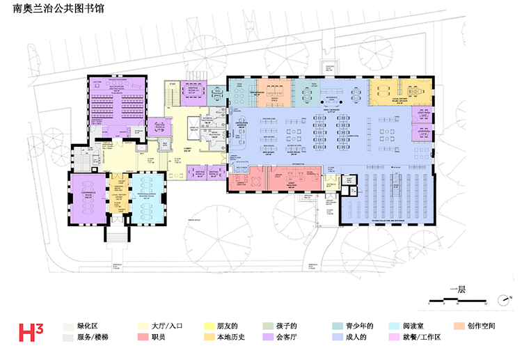 南奥兰治村委托H3公司对其现有的图书馆进行改造,并创建一个具有充足公共空间的动态、无障碍图书馆。该项目是一个具有成本效益的计划,通过修复现有的9,300平方英尺的Connett大楼,解决功能和建筑标准方面的不足。Connett大楼在过去30年一直出租给非公共组织。在Connett大楼和现有的1968图书馆大楼之间建造一个两层的绿色屋顶的连接体,将使图书馆的总面积增加45%,并将创建一个21世纪的图书馆,为社区的多样化、增长和不断发展的需求提供服务。